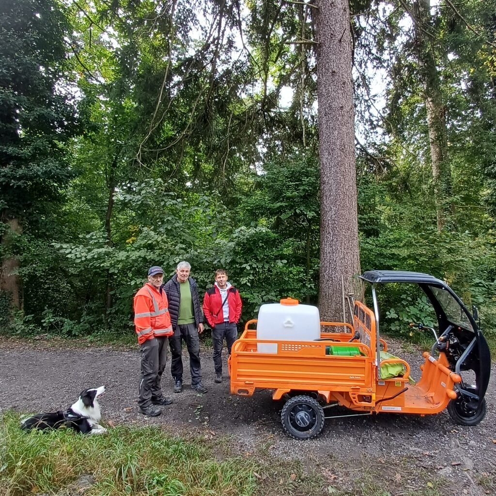 2025-10-10 Der AlpenSchutzVerein hat in Zusammenarbeit mit der Gemeinde Höchst eine Lichtung nahe dem Lehrbienenstand mit 30 Stieleichen standortgerecht aufgeforstet. Zuvor wurden mehrere hohe Fichten gefällt, welche ja nicht unbedingt typisch sind für einen Auwald. Der Platz wird auch als Waldkindergarten genutzt. Die Bäumchen wurden auf einem von der Gemeinde